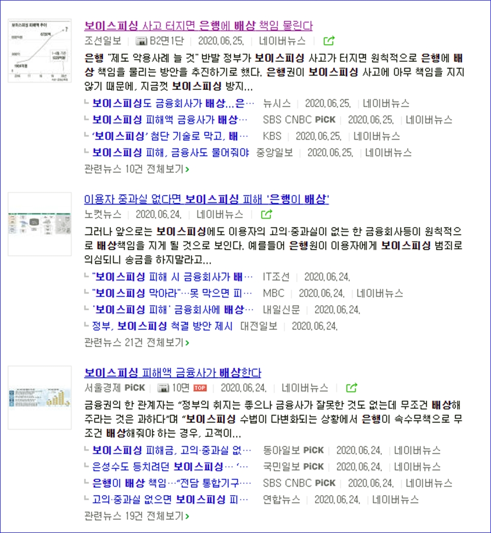 이번 정부에서 보이스피싱을 통해 발생된 피해금은 은행에서도 방지하지 않은 책임이 있기 때문에 피해자에게 배상을 해줘야한다고 법 개정을 한다는 이야기를 들었다.