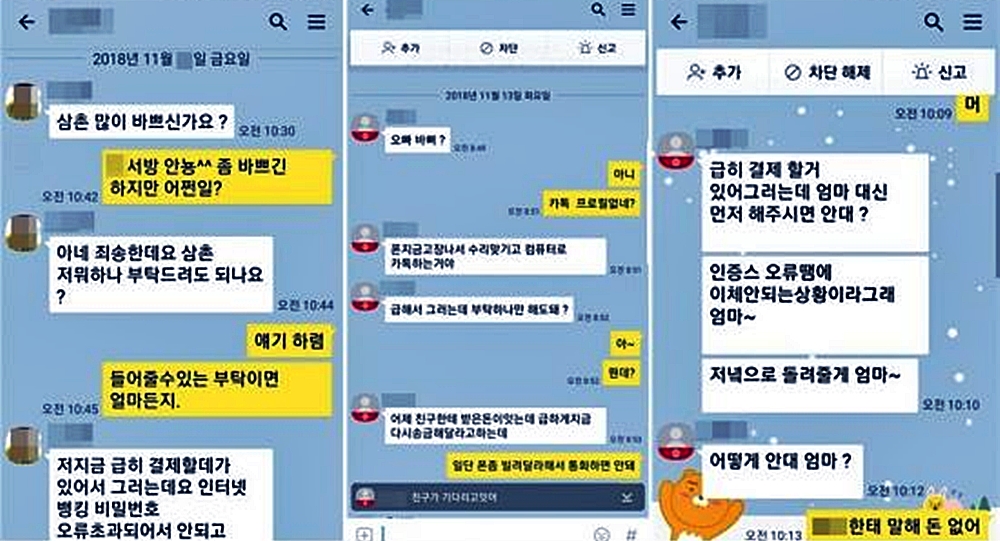 상당히 단순한것 같아서 속지 않을 것 같지만, 요즘 개인정보를 중요하시 하는 사람들 또는 다른사람의 이야기를 잘듣고 믿어주는 어르신들이 이런 수법에 속아서 평생 피흘려 번돈을 사기꾼들에게 쉽게 줘버리게 되는 것이다.
