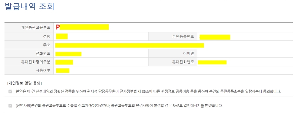 타자속도가 빠르다면 1분도 안되서 발급을 받을 수 있을 것이다. 주의해야할 점은 개인정보를 입력시 오타없이 입력해야한다 나중에 문제될 수 있기 때문이다. 또한 개인통관고유부호가 필요한 곳에서 번호를 잘못 입력한다면 수입한 물건을 못받을수도 있으니 여러번 확인하여 실수를 면하도록 하자.