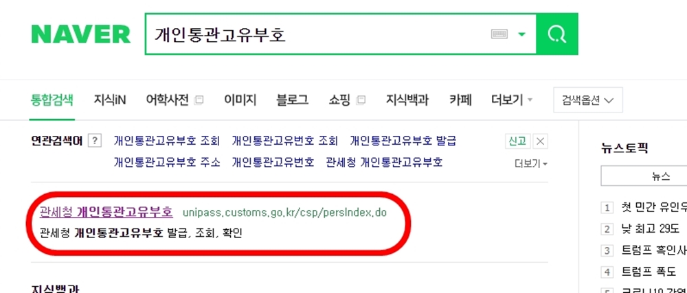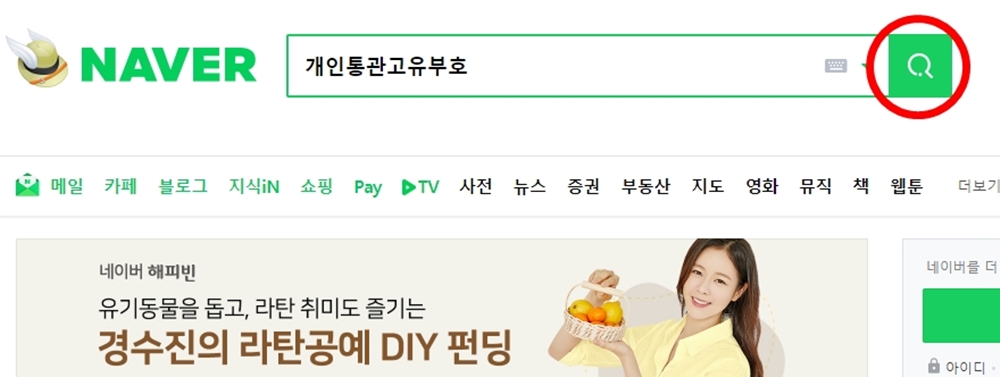 1. 검색창에 개인통관고유부호를 검색하여 관세청 홈페이지로 접속.