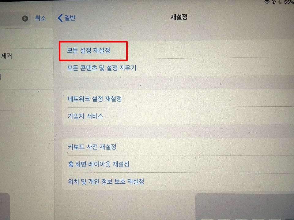 4. 모든 설정 리셋