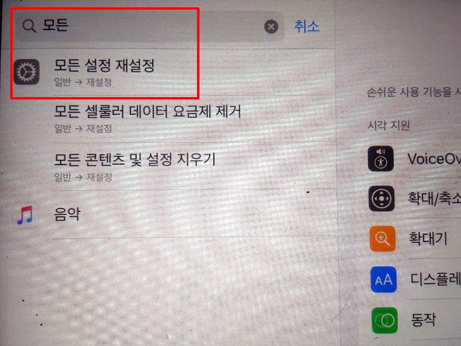 핸드폰을 바라보다가 스르륵 의지와 상관없이 잠들었을때 나도모르게 내 손가락으로 이것저것 누르다보면 잘못된 설정을 간혹 할수도있다. 드물지만 3번까지 방법을 모두 해보아도 해결되지 않았다면 모든 설정들을 재설정해보자. 재설정 하는 방법은 설정 검색창에 [모든 설정 재설정]을 검색하고 모든 설정 재설정 버튼을 눌러주면 된다.