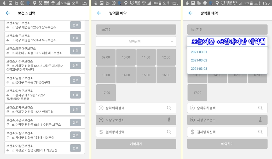 문제는 3월1일에 집에서 그나마 가까운 사상구 보건소를 가야하는데, 필자는 장롱면허에 자차가 없다. 지인 또는 가족들에게 부탁할 수 없고, 대중교통도 이용할 수 없다고 한다.